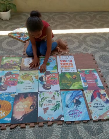 Momen seru anak-anak saat membaca bersama keluarga.